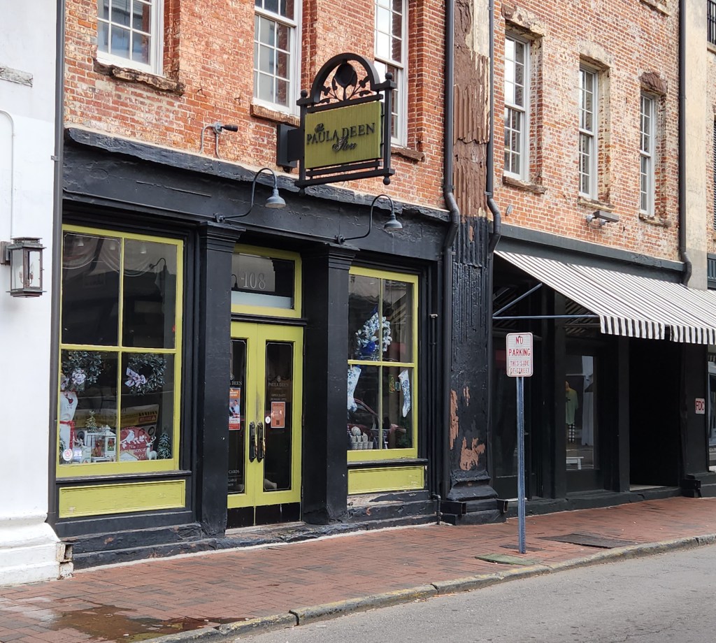 We went back to the historic district in Savannah and started at the west end. We stopped at Paula Deen’s shop and bought my sister Carol and her friend some cooking utensils and a cookbook. We had just been talking about her cooking show.