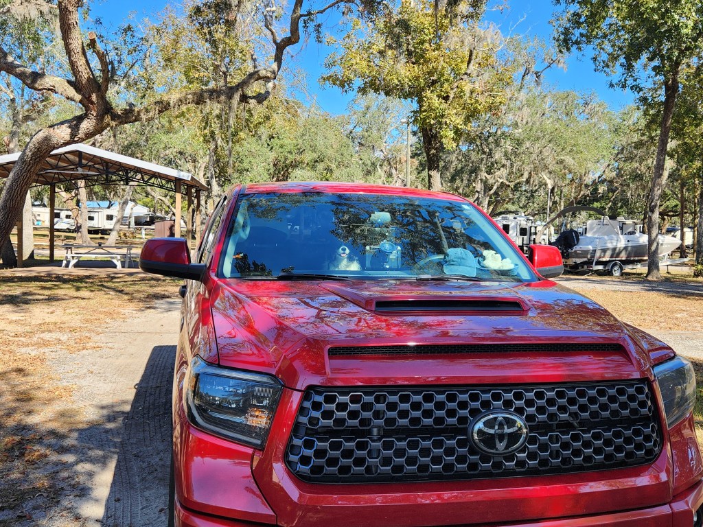 We started our travels in the rain this year. I think we setup more in the rain than not. Going to Key Largo it rained the whole way down. We set up in the rain, we tore down in the rain. Then it quit raining for about a half hour on our way to Everglades National Park. We left the everglades and spent the night at Suwannee River Bend RV Park on our way to Emerald Beach RV Park where it rained while I setup and tore down the trailer then it rained the whole trip home.