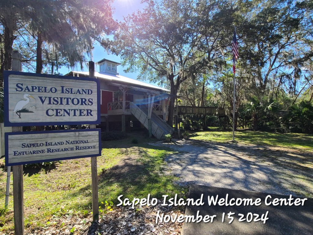 We left Rivers End and went to Sapelo Island Visitors Center on our way to Suwannee River Bend RV Park. We wanted to see what we could find for a friend of my sister Carol. She wanted to go there and things didn’t work out. We bought her some books on the history of the area. FYI: Blackbeards island is right next to it.