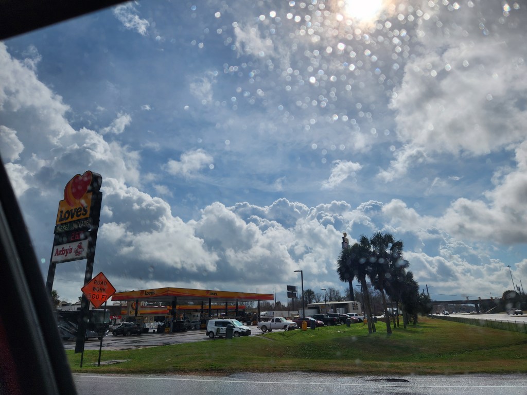 We ended up driving through Baton Rouge and stopping for gas at Love’s so we parked and slept there for an hour plus.