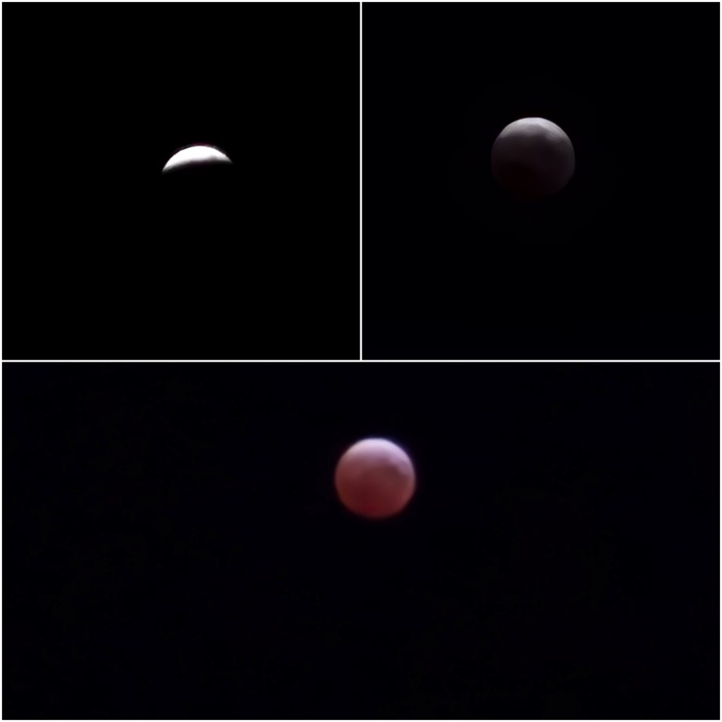 There is a total lunar eclipse tonight creating what they call a blood moon caused by the lack of light on the moon surface during the eclipse.