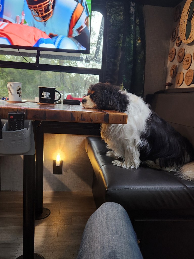We did some shopping, got the trailer setup, tv working and it’s seventy seven degrees with a great breeze. If things were any better I would have to be two people to enjoy it all.