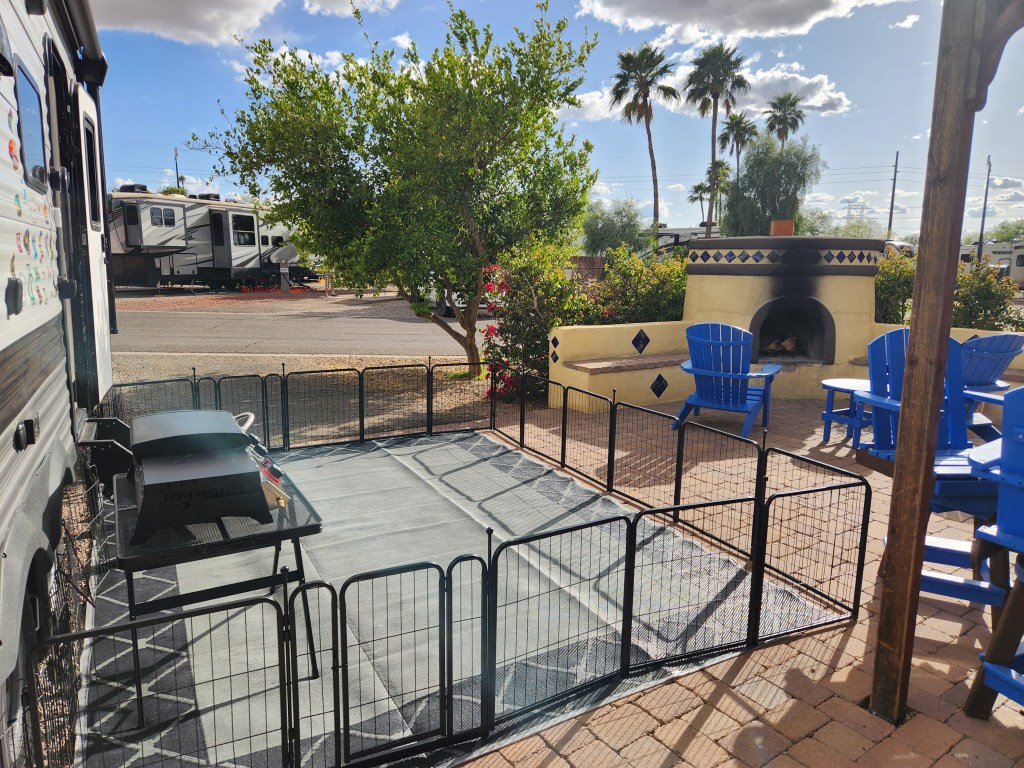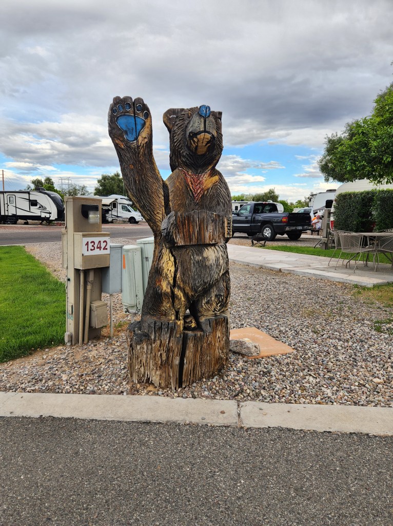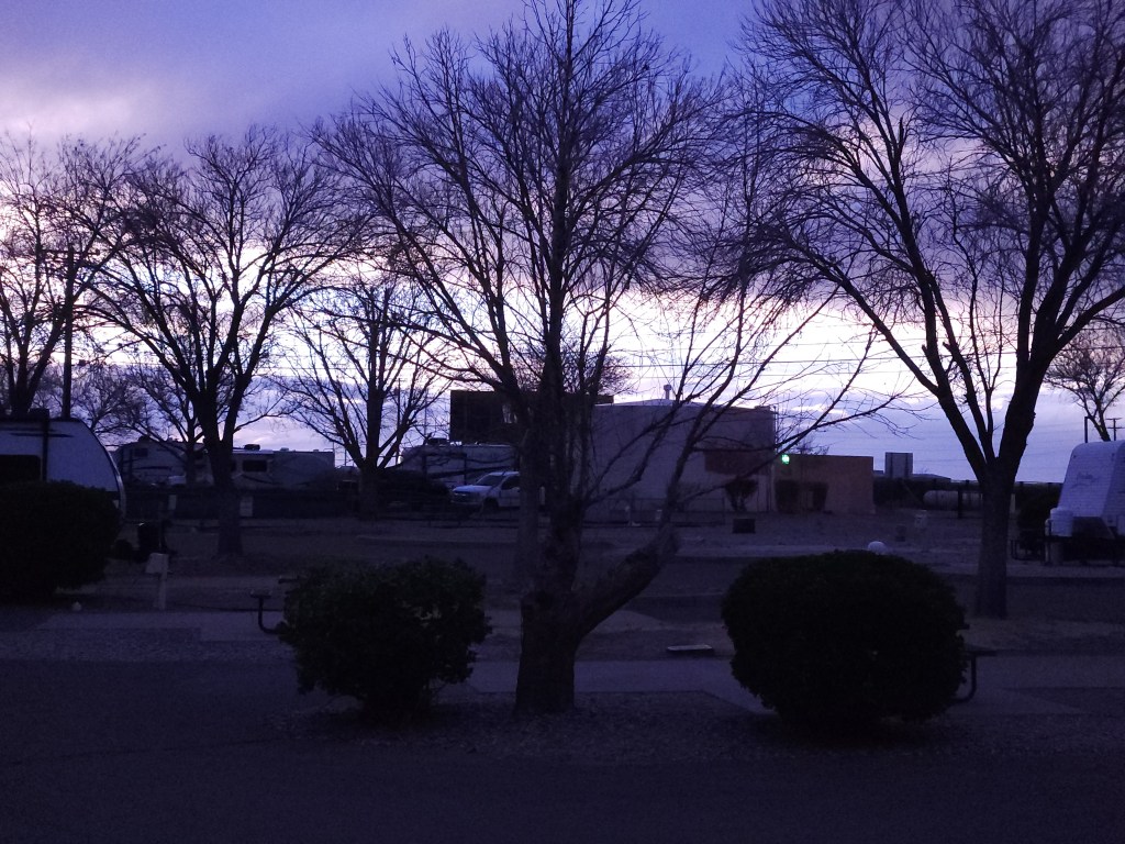It seems like the main difference between the weather in Indiana and New Mexico is that in Indiana they talk about rain, snow/ice and tornadoes, in New Mexico they talk about wind, dust storms and possible fires at least in the spring. Texas is similar to New Mexico. Between Texas and New Mexico it is very hard to keep the trailer clean. I’m just glad that’s Carol’s job.
