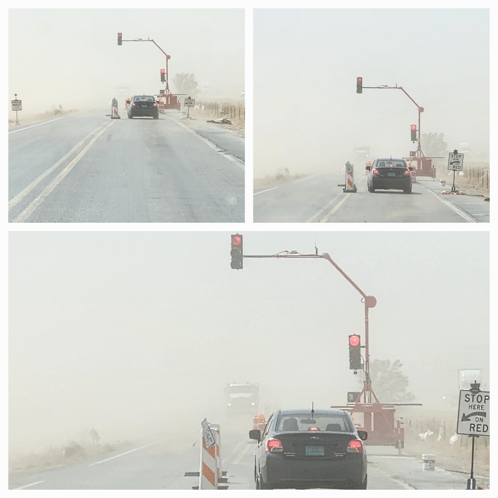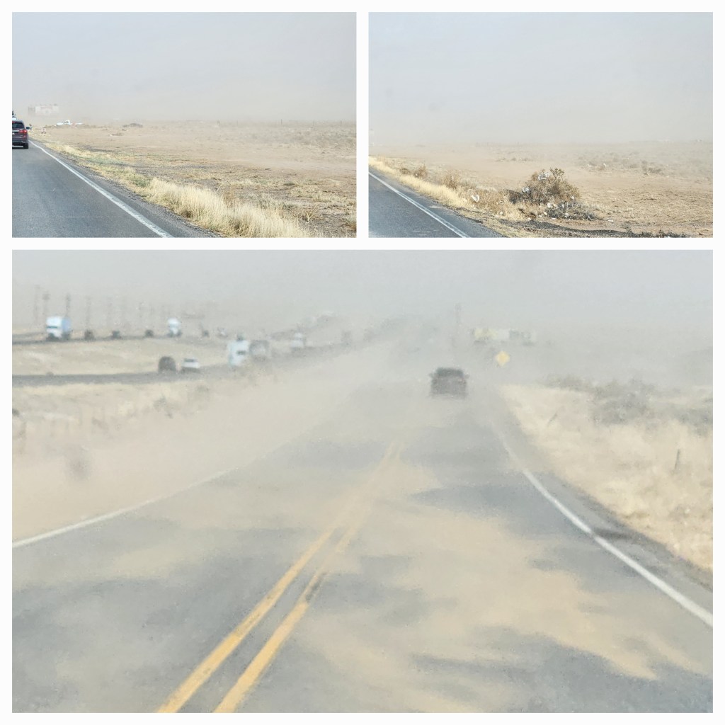The, wind was hitting the trailer from the end not the side but we were still rocking and shaking a lot. With all the businesses around us we didn’t have the dust like we could have had on the road so I went on some back roads to see what it was like.