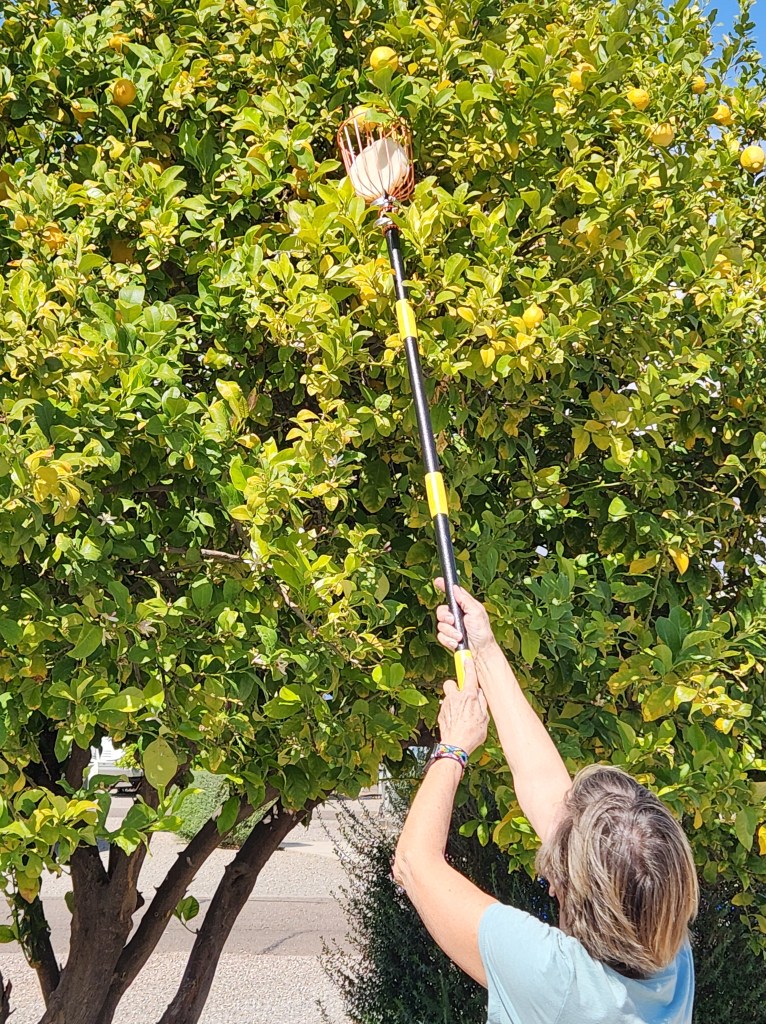 After breakfast Carol and I borrowed a fruit picker from the RV park office and picked fruit for about an hour.