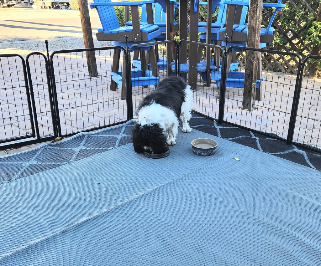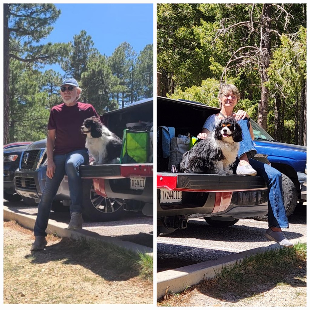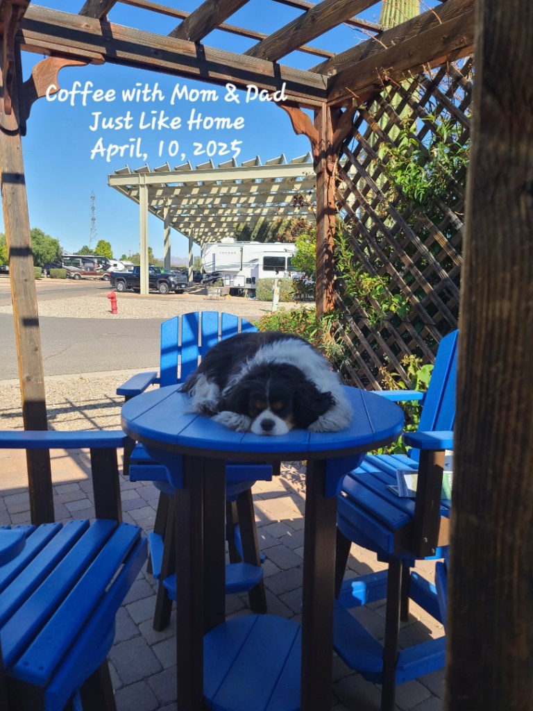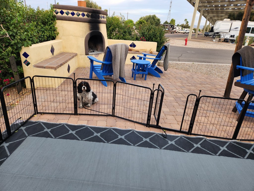 Buddy has gone from being a tricolor Cavalier to a quad color. He is black, white and brown with dirty gray paws. I don’t think his paws will be white until we leave the southwest. I don’t think he likes all the dirt and dust either.
