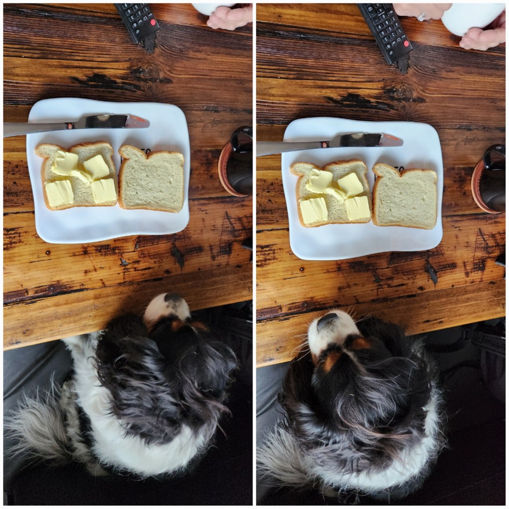I had stopped to have lunch, which bread and butter were part of and Buddy was being real good.